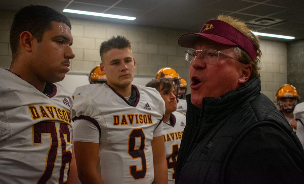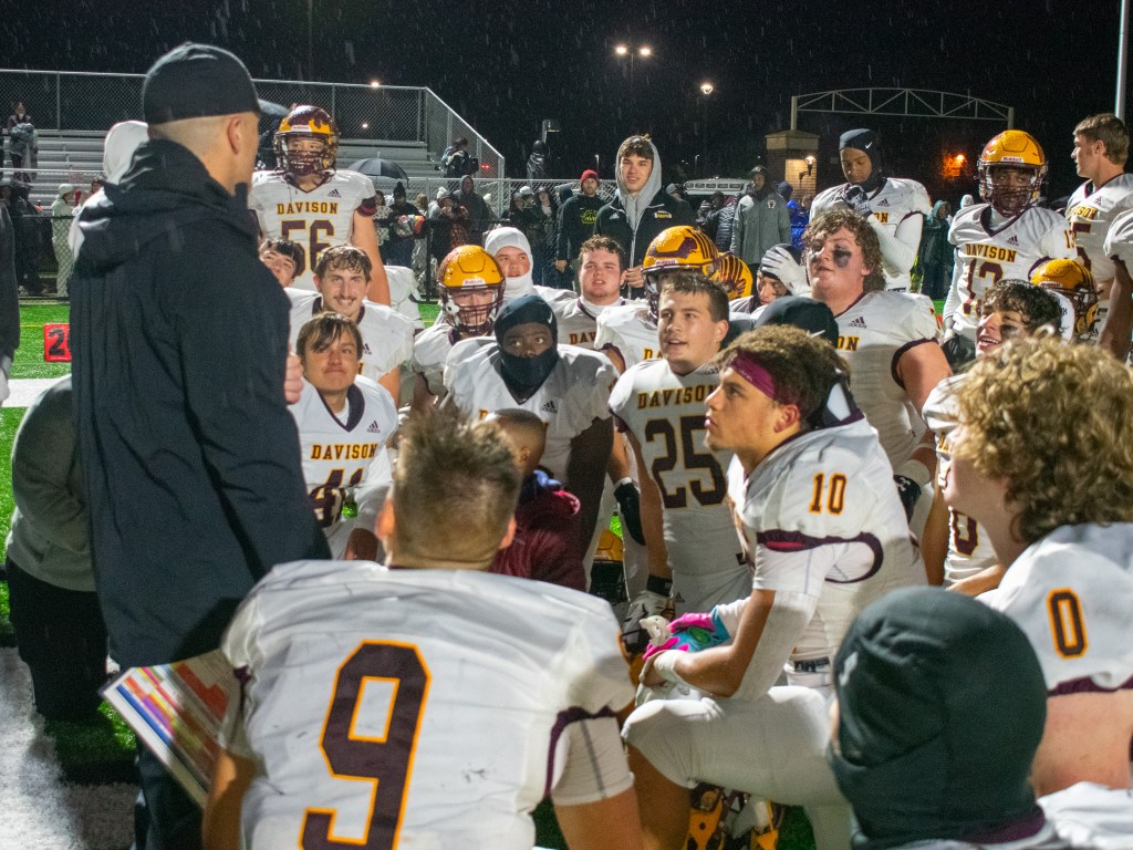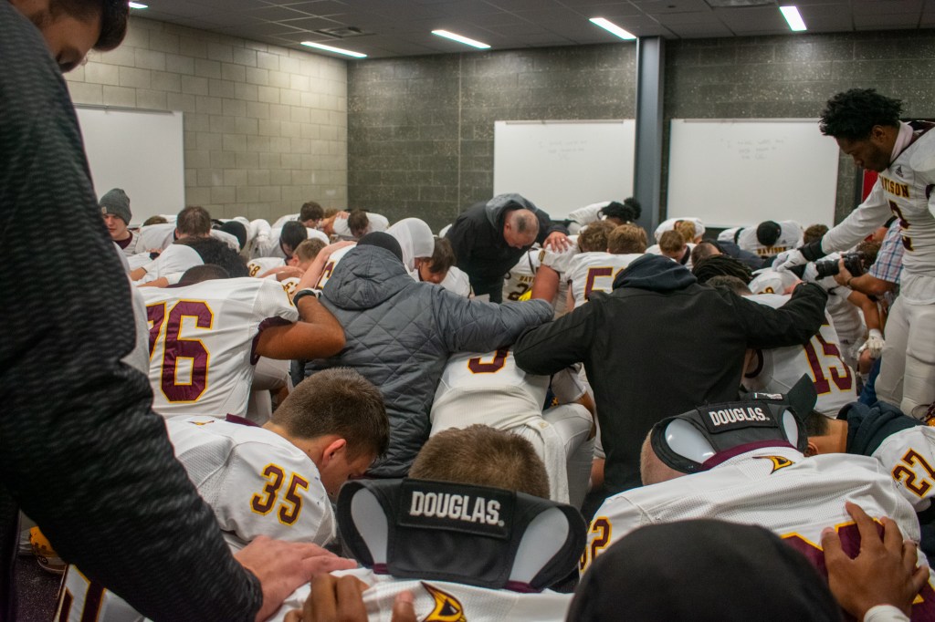 I met May at the gate to get in, and after introductions, we immediately got our cameras out and were taking pictures while talking. He talked to Davison’s coach and was able to get us into the locker room to hear their pre-game talks. Something funny I remember is him and another coach apologizing for the language that will be used and saying that they don’t do that a lot… which I doubt. I just found it funny.