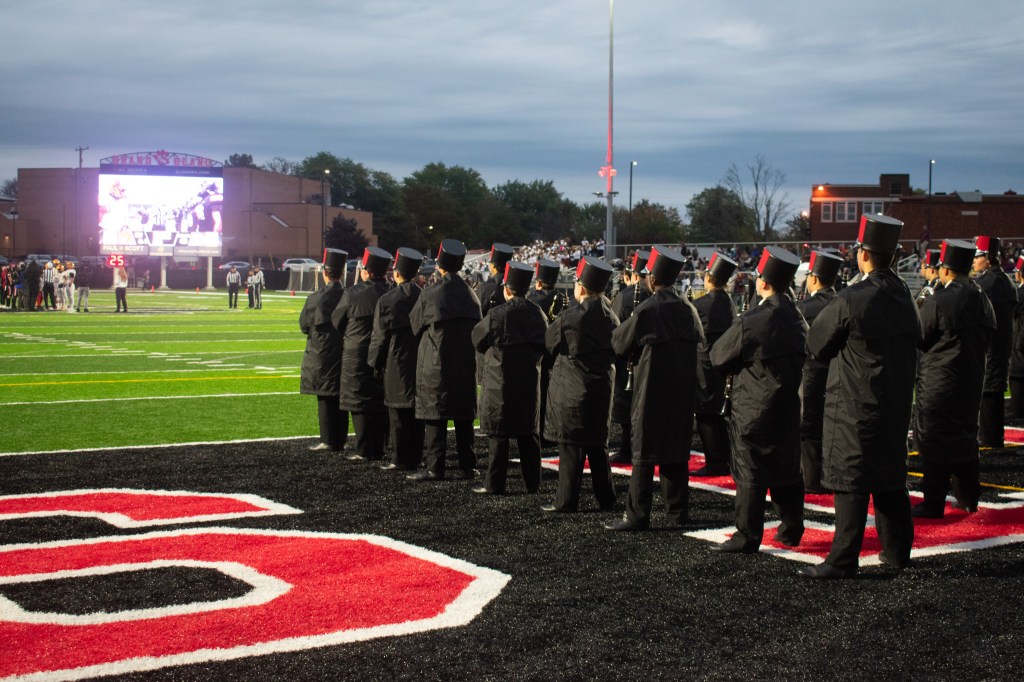 Then we left the locker room to see Grand Blanc ready to rush the field. Those were really cool shots, as they ran through smoke, but my camera was on a weird setting and made most of the photos too blurry to use. I got one of their mascot, though.