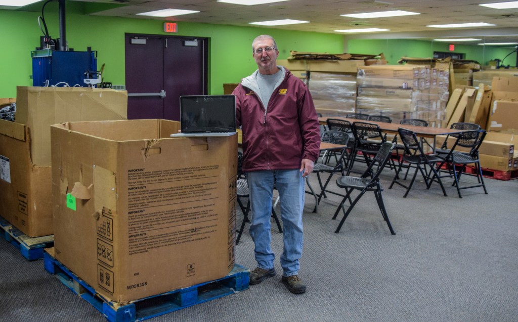 Dee Obrecht, Executive Director of the Isabella County Restoration House, poses in front of their new building, Thursday, Nov. 30, 2023. After 10 years of the program, the ICRH were able to purchase this location to house their residents year-round, instead of just having a day shelter.Donald Long poses in the Recycling Center at Central Michigan University, Friday, Nov. 9, 2023. Long is CMU’s Recycling Coordinator for Facilities Management.