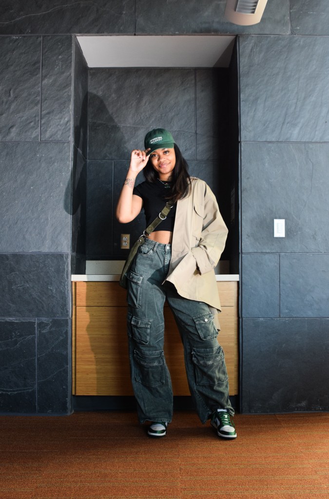 Originally, the vibe I was going for was the college vibe going to class, but obviously with fashionable clothing. Basically, how to be fashionable in class. I thought the auditorium would have been a phenomenal place to shoot due to its size, how it’s modern, and has a lot of visually appealing elements.